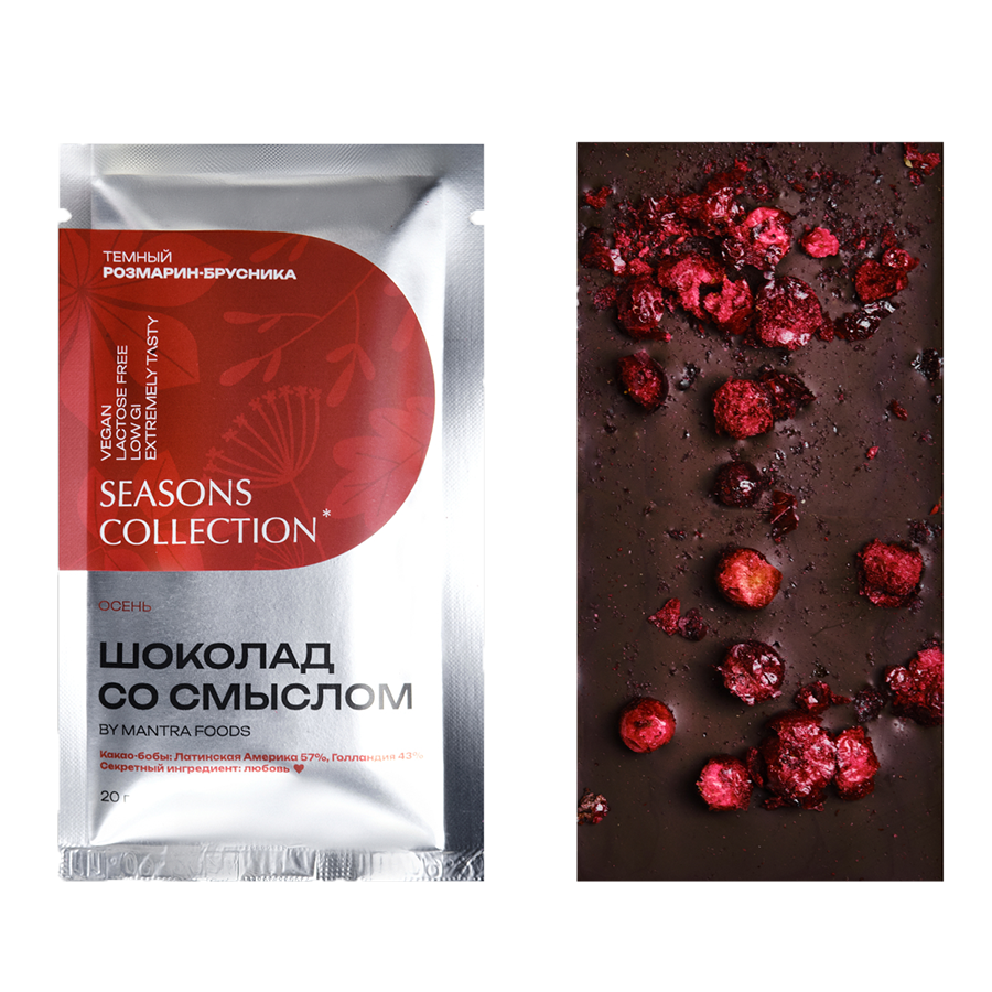Главная / Продукты / Шоколад / Шоколад со смыслом "Розмарин-Брусника" Mantra Foods